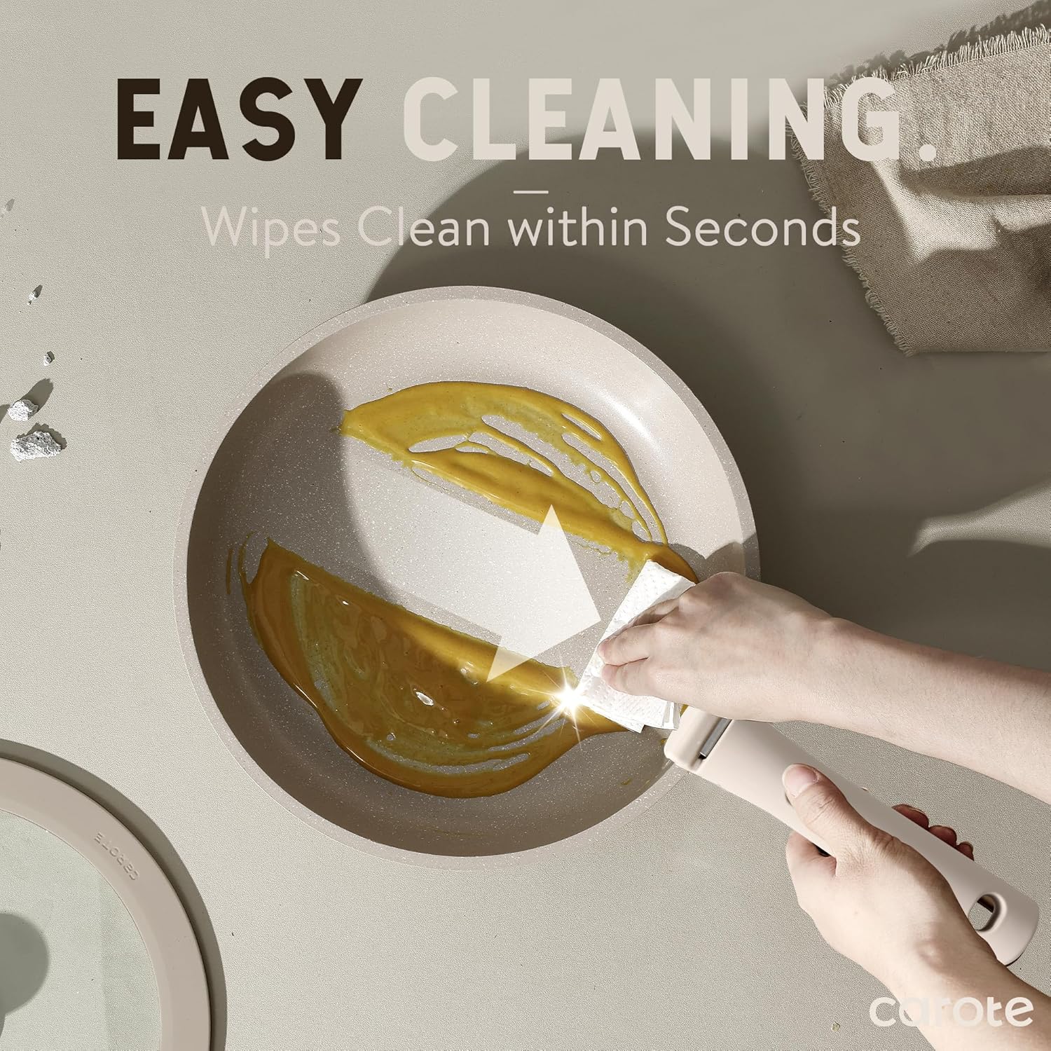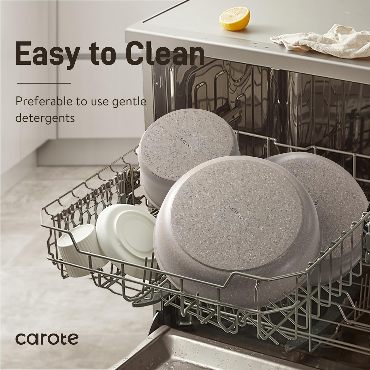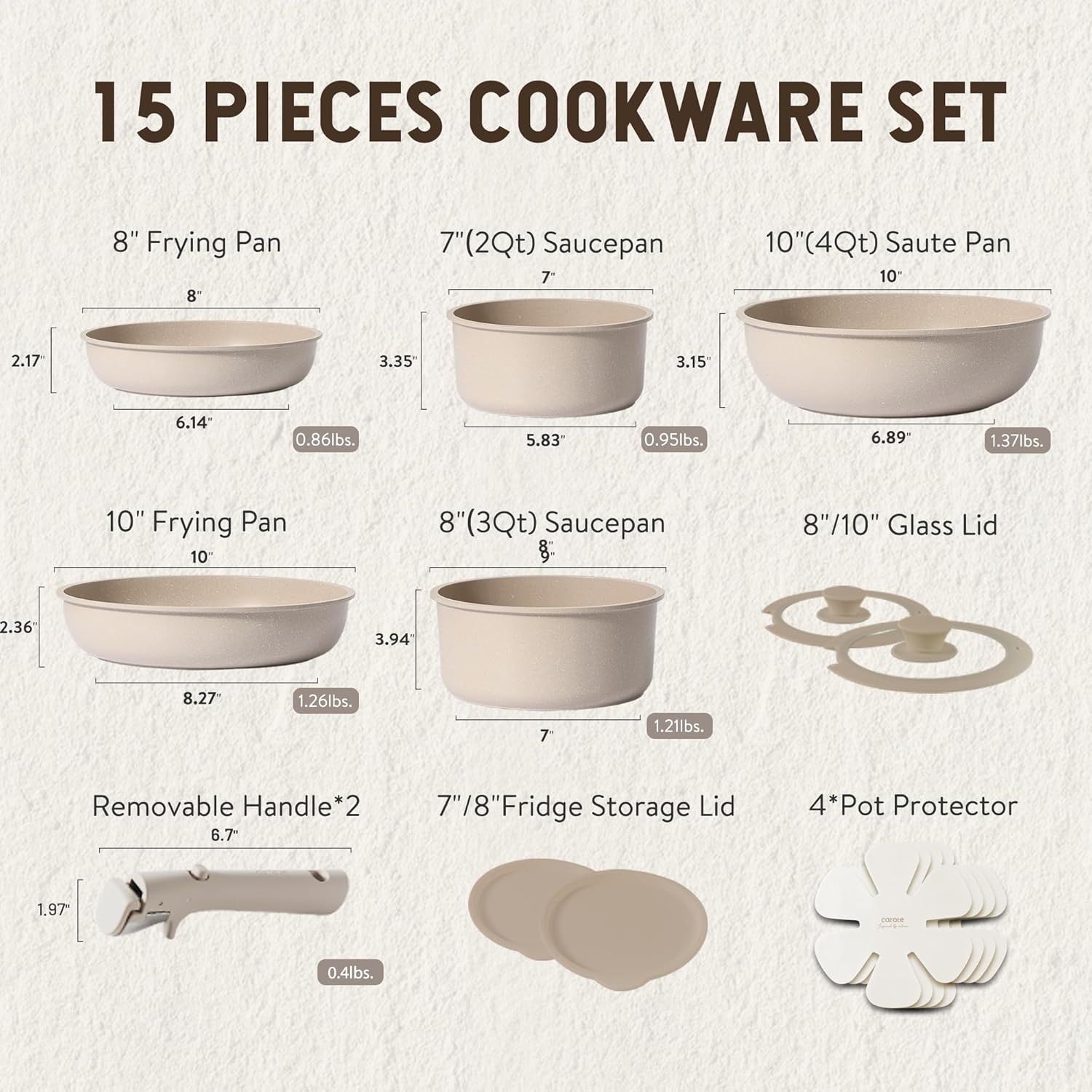 Upgrade your kitchen with the CAROTE 15pcs Pots and Pans Set in a stylish taupe color that will complement any kitchen decor. Experience the convenience and versatility of this nonstick cookware set that will inspire you to create delicious meals with ease.