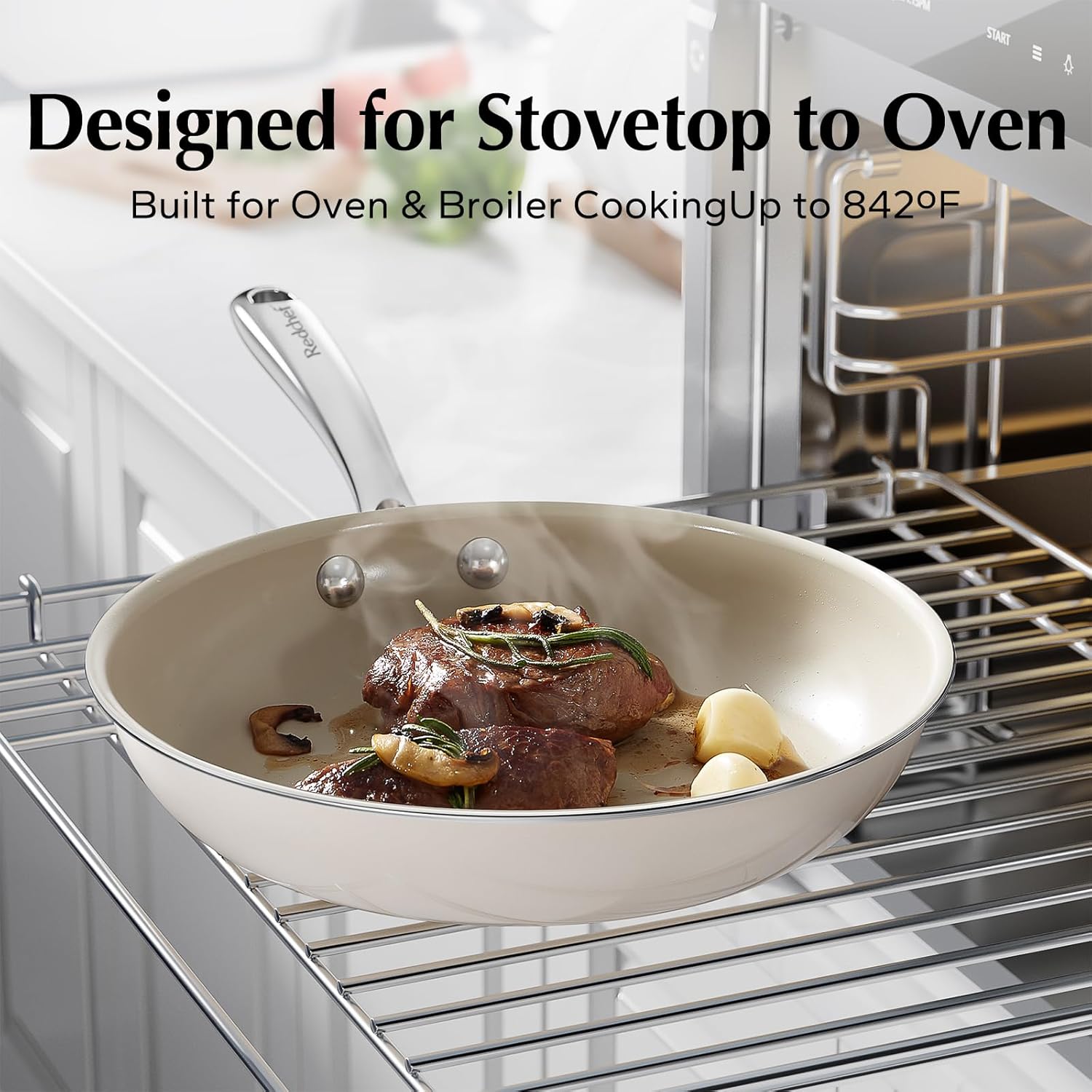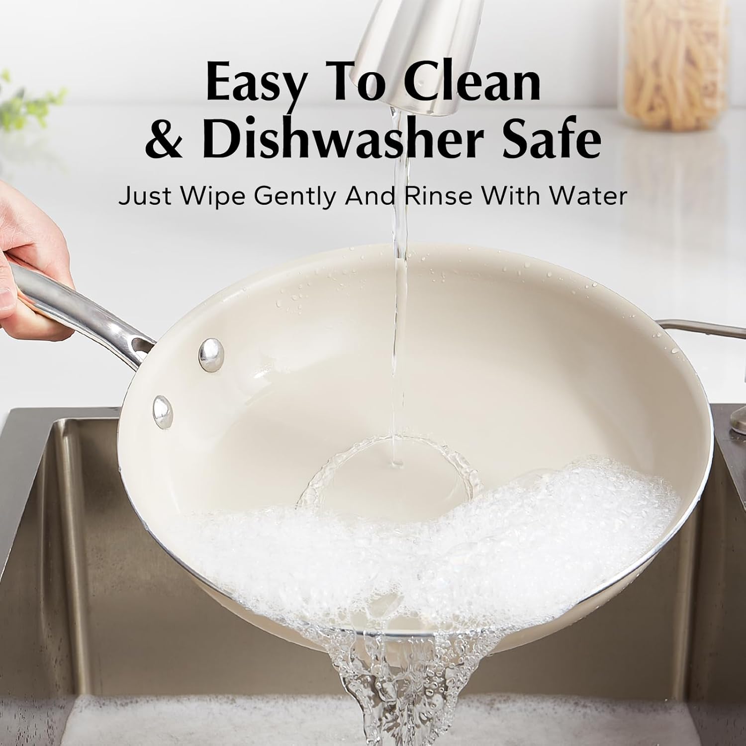 Crafted with premium ceramic coating, this pan is free from harmful chemicals such as PTFE, PFAS, and PFOA, ensuring a safe cooking experience for you and your family. The nonstick surface allows for easy food release and quick cleaning, making it a convenient choice for everyday use.